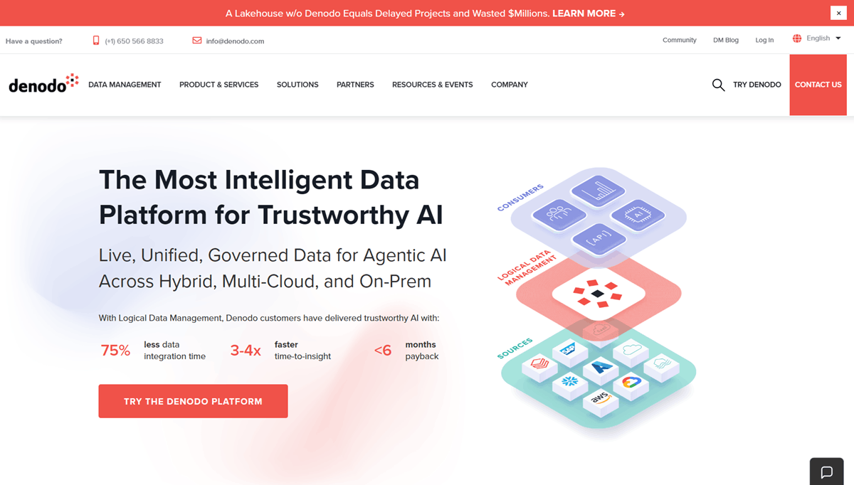 - Denodo: Data virtualization / logical data management for fast federation across systems