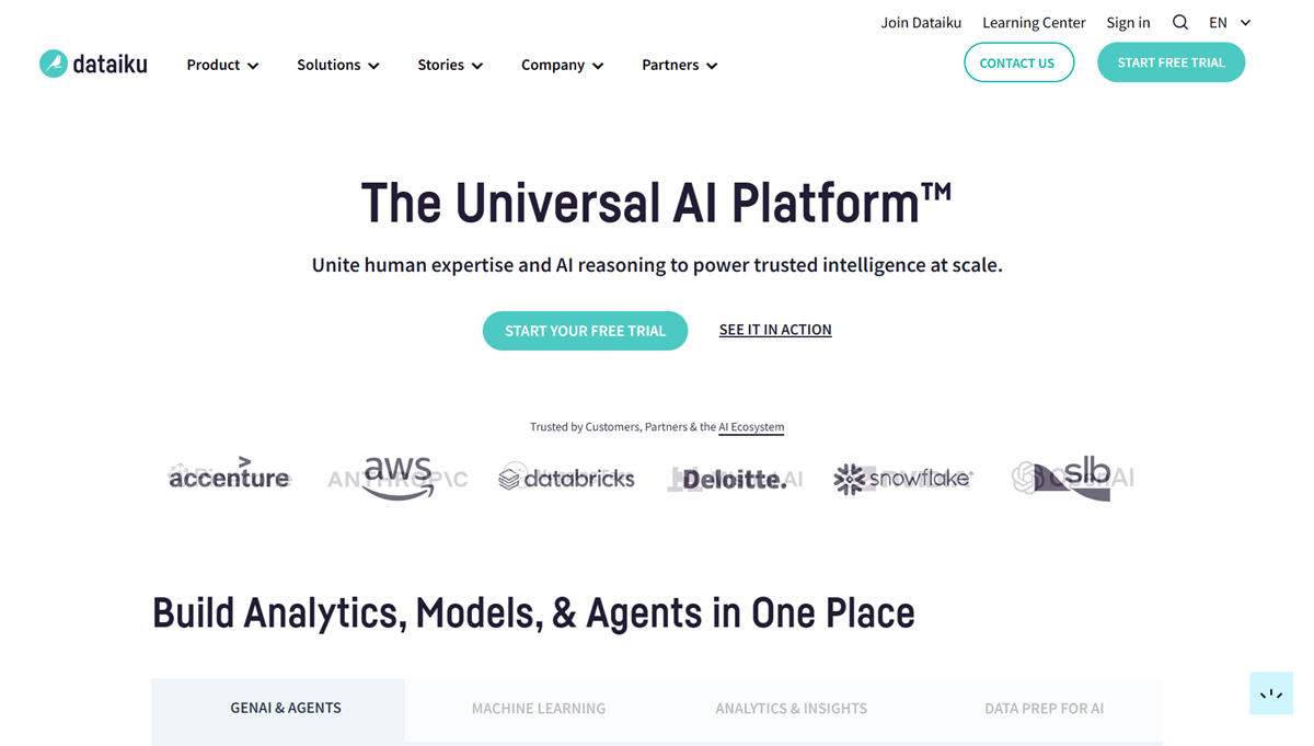 - Dataiku: Collaborative data science and ML workflows, from experimentation to deployment