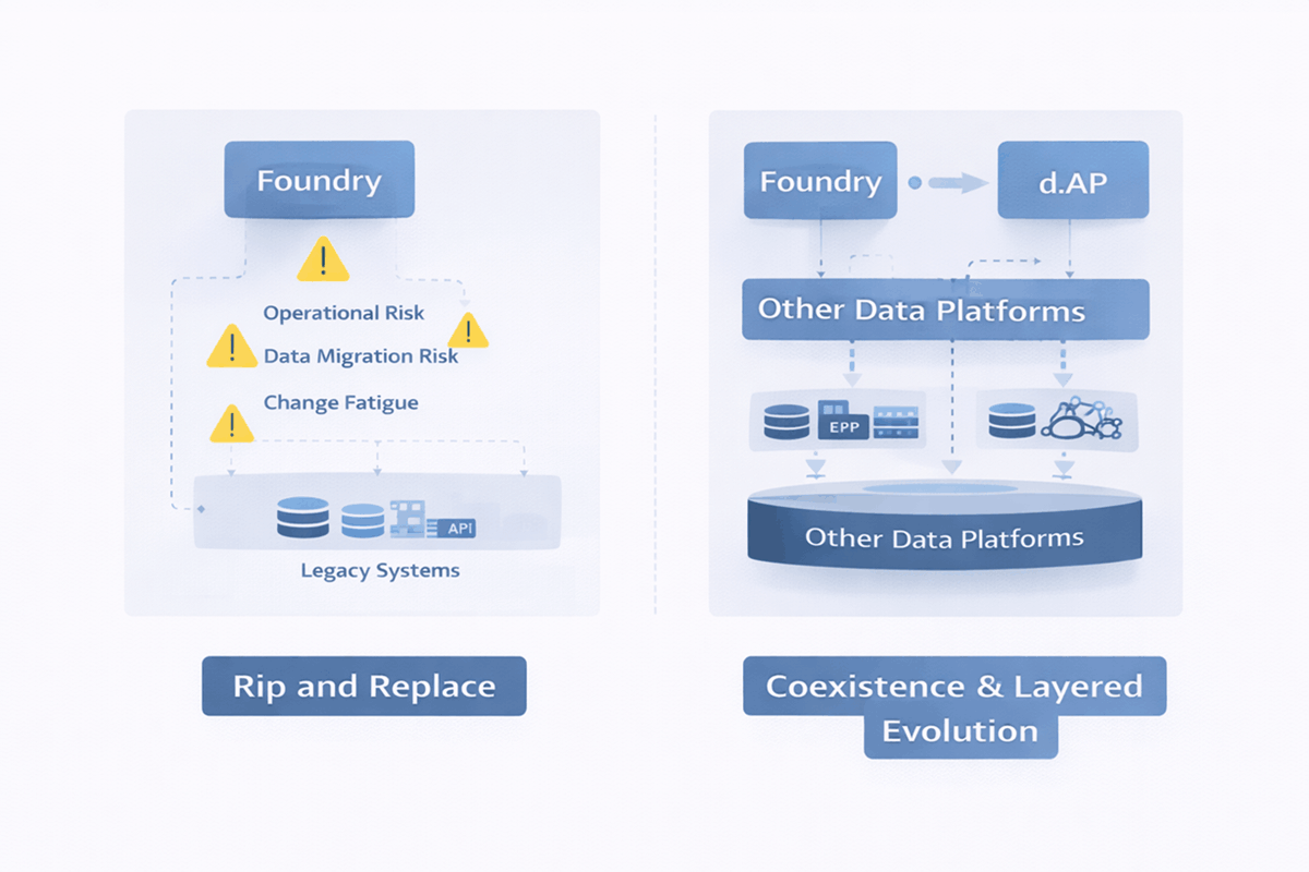 A full Foundry replacement is usually the less common path once the platform is mature. The more realistic pattern in 2026 is complementing Foundry - keeping it where it works, while reducing risk and fragmentation across the wider enterprise stack.